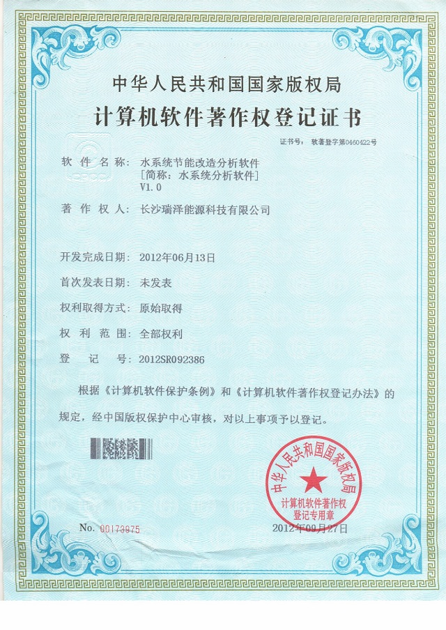 瑞澤能源成功取得計(jì)算機(jī)軟件著作權(quán)登記證書