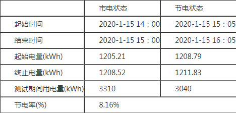 某企業(yè)在低壓總配電端安裝“電能質(zhì)量?jī)?yōu)化節(jié)電裝置”后,企業(yè)配電系統(tǒng)的三相電壓電流趨向于平衡,瞬流浪涌得到明顯的改善,功率因數(shù)提高,諧波分量減少,企業(yè)配電系統(tǒng)用電效率提高,達(dá)到了良好的節(jié)能效果,測(cè)試數(shù)據(jù)如下: