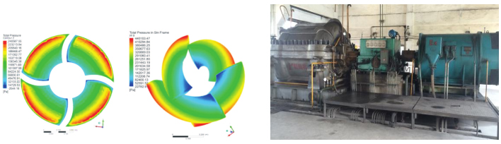 工程實施:先進行系統(tǒng)及管網(wǎng)優(yōu)化,消除系統(tǒng)損耗,再進一步提高風機本身的效率,更換高效節(jié)能風機或更換葉輪。根據(jù)實際工況需求,基于三元流葉輪理論和空氣動力學理論重新設(shè)計風機葉片和風機蝸殼流道,通過CFD分析軟件對風機葉輪模型進行修正,使其流態(tài)更穩(wěn)定,效率更高。風機進口采用分流技術(shù),風機流道采用導(dǎo)流套,降低風阻和渦流,轉(zhuǎn)子部件采用精密加工,進一步提高效率。